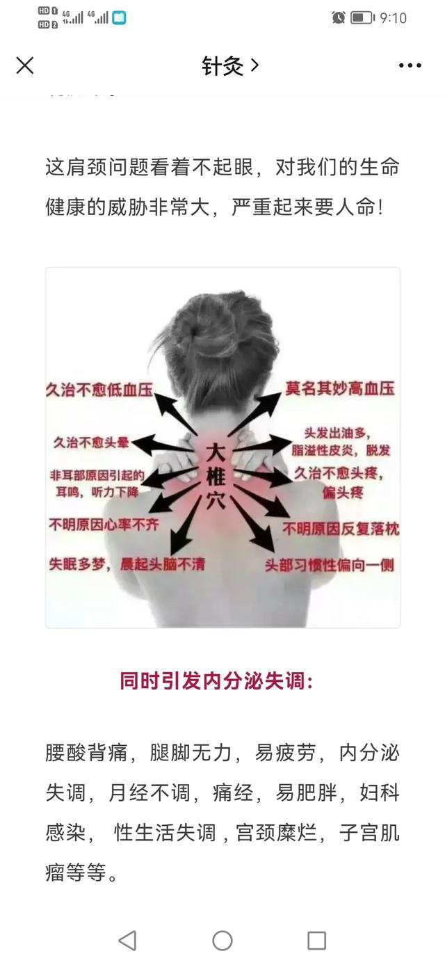 我就是颈椎不好,服装厂做检验,整天低着头,颈椎痛的压迫神经,胳膊都举不起来,针灸拔罐治疗了好多次才得以缓解
