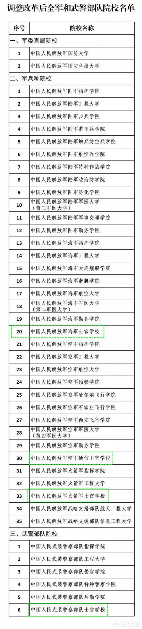 经过改革后,军事院校只有43所,其中士官学校只有几所。