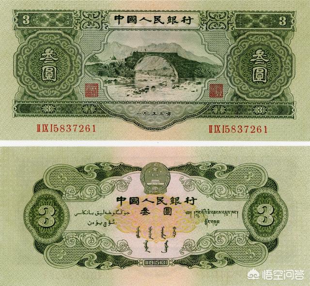1953年三元纸币,简称苏三元、井冈山绿三元,属于我国第二套人民币。