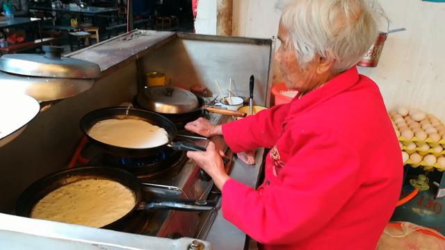 在云南省个旧市,有一个特别出名的小摊,那里有个老奶奶做了一辈子的米浆粑粑,现在都84岁了还在坚持。我们都是从小吃到大的,放学时从小巷那里走过,有个一楼阳台开了个小窗,里面有位个子瘦小的奶奶用个平底锅在做粑粑。那时候还只有米浆粑粑,一勺米浆一个粑粑,拿了边走边吃。先撕下烤得焦香的边,一直慢慢吃到中间柔软雪白的部分。算是一份记忆中的情怀吧。(下图就是做米浆粑粑的老奶奶)现在奶奶也是网红了,很多人到个旧都会去买一个尝尝。
