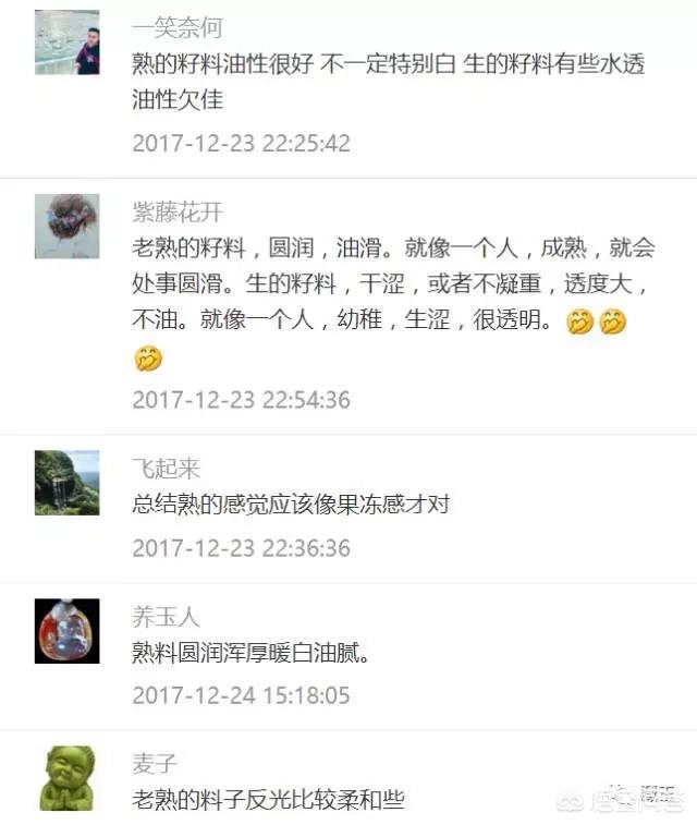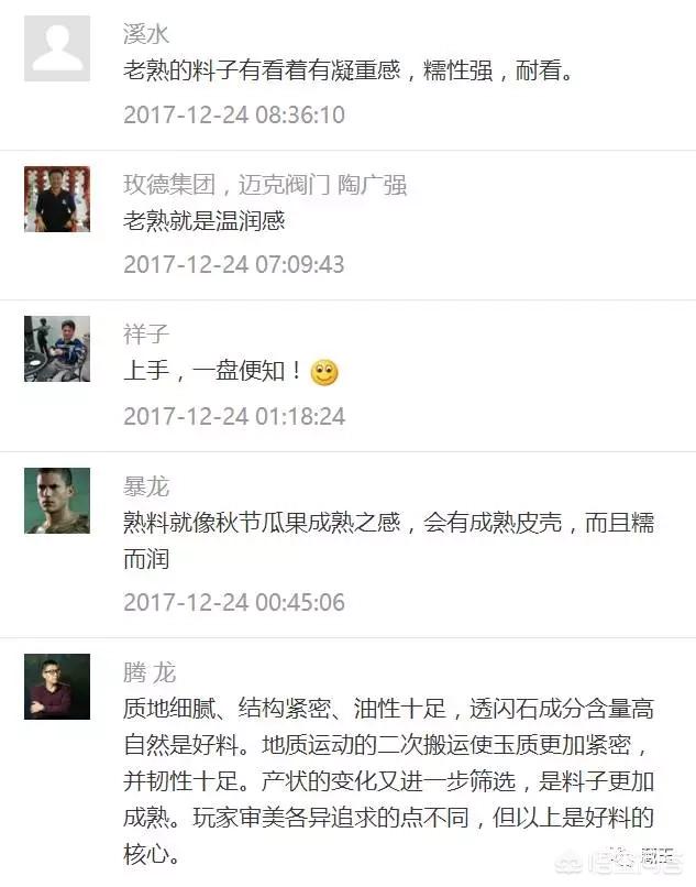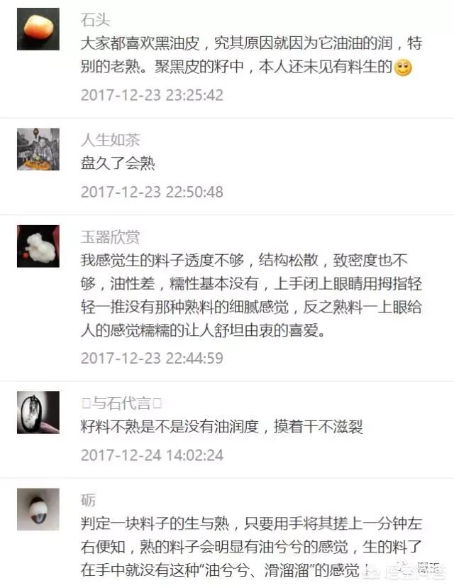 籽料熟不熟是真正最终评价它好坏的标准。那么如何看老熟呢?藏玉之前讲过很多,今天我们来看看玉友们都是怎么说的吧:    不知道大家的这些留言对你了解籽料的老熟有没有新的认识呢? 简单来说,熟的籽料更加油润,而且与白度没有太多关系。熟的籽料外形、玉色等看起来都更加舒服。就像苹果一样,即使它不红,你也能感觉出它内在的诱人果香。  别管黑猫白猫抓住老鼠就是好猫;别管红苹果、青苹果,长熟的苹果就有它的味道。 别管白籽料还是青籽料,老熟才是王道! 2019-06-18 15:56:49