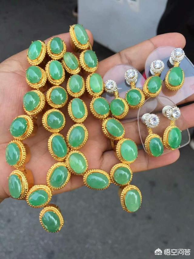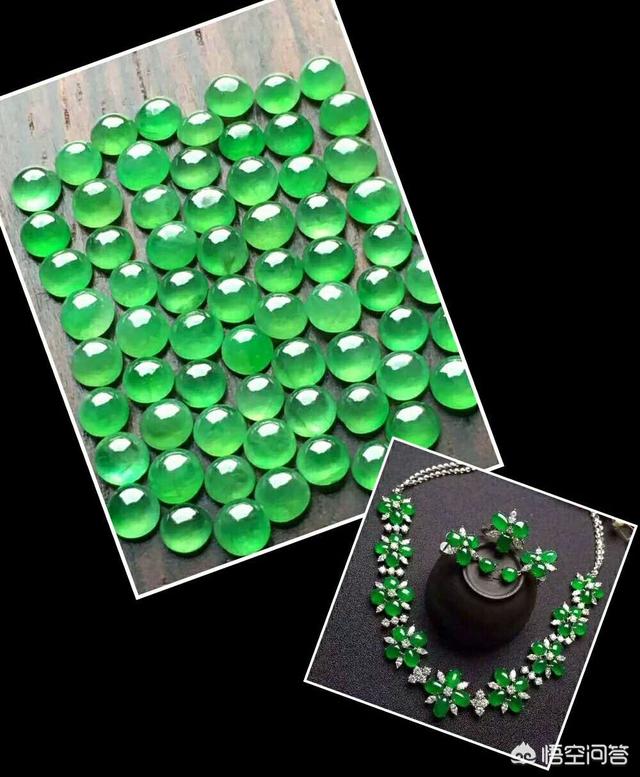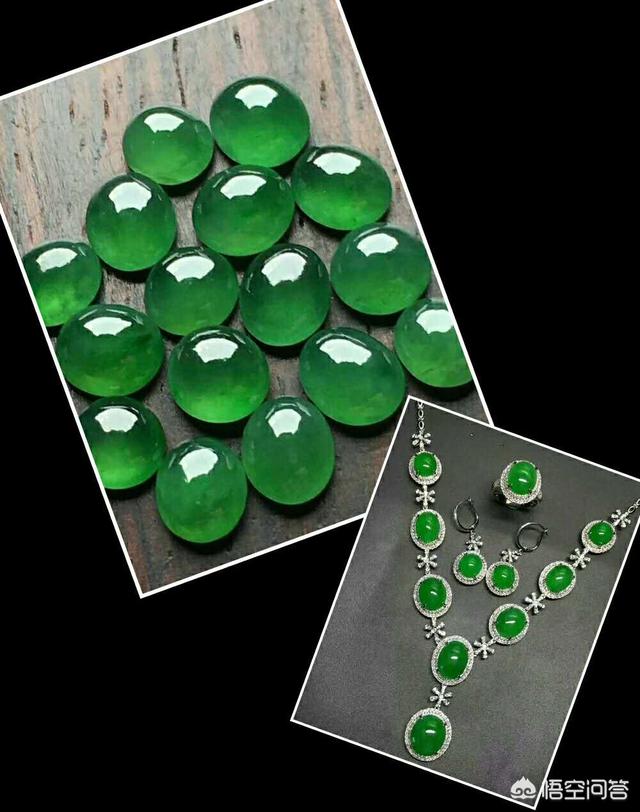 68颗冰种绿蛋面,九章工厂一手批发全部4800。尺寸3/3.5这个大小基本用来镶嵌花式项链、胸针什么的。