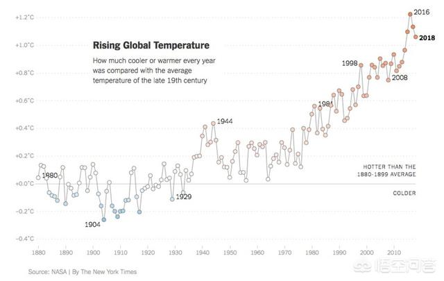 19世纪晚期至2018年全球气温变化曲线图全球变暖