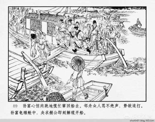 后来,穷困潦倒一筹莫展的李甲,遇到好色又阴险的富贾孙富,在孙富的金钱利诱下,李甲立了契约,把杜十娘专卖给孙富。杜十娘知道后心痛李甲忘恩负义,打开百宝箱把一件件宝物抛向江中,最后纵身跃入滚滚波涛之中。