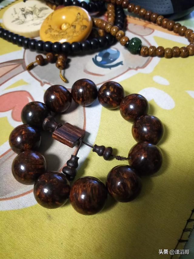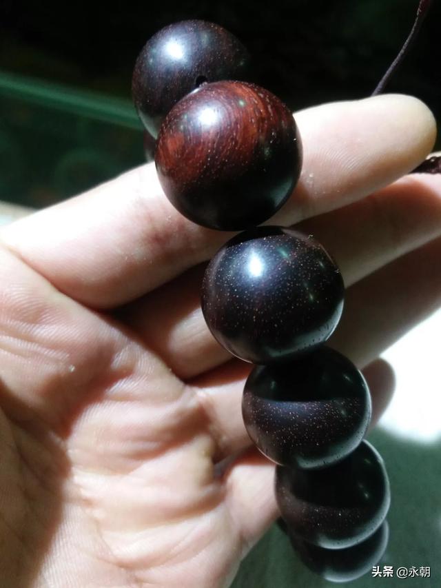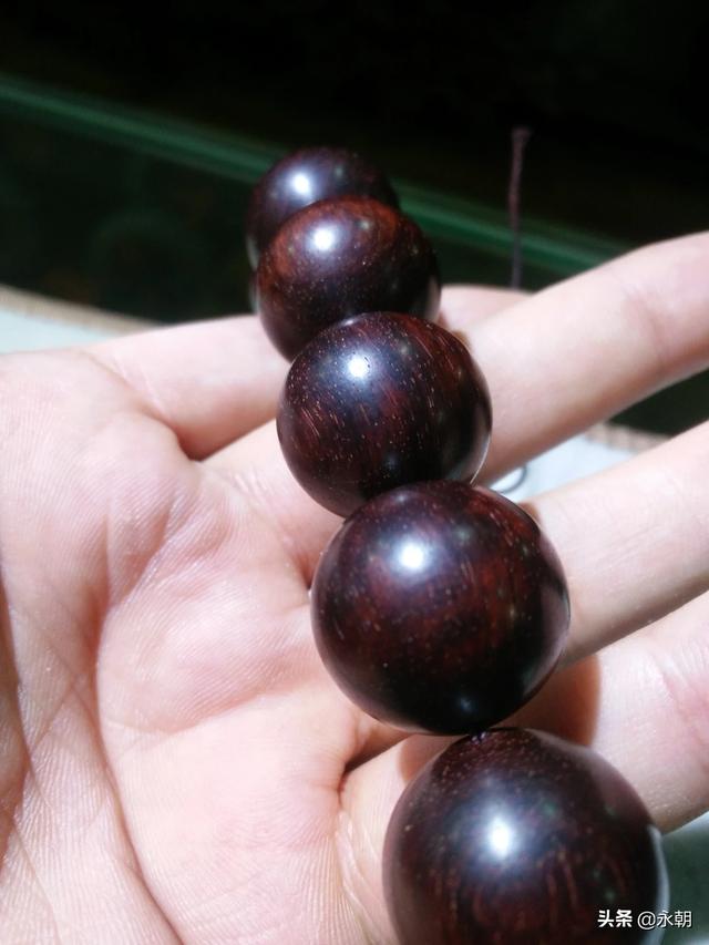 盘玩木头类的佛珠手串,最好不要急着上汗手,戴棉布手套盘或者棉布的小袋子装着盘,无论黄花梨还是小叶紫檀都一样的,如果直接上手盘就会被汗液把表面的抛光面破坏,木质也会迅速变黑。变黑了也没事,现在在用棉布手套盘,光泽会重新盘出来的