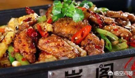 成都干锅,是很火锅相对而得名的一道菜。