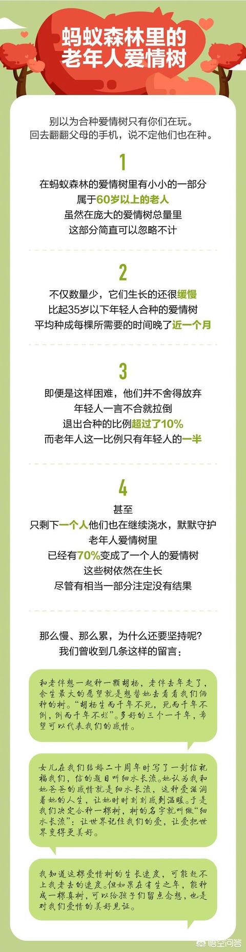 2月14日,支付宝微博官网公开了一组数据显示,老年人也在合种他们的爱情树(见下图),引用其中的一句话“他们可能一辈子没过过情人节,但他们是最长情的情人”。同样,他们可能对互联网时代不太熟悉,但公益之心却一直存在。