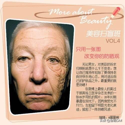 紫外线除了可以“晒黑、晒伤”皮肤,还可以引起皮肤光老化-----色斑、干燥、毛细血管扩张、皱纹、松弛和下垂,通俗的说就是紫外线促使皮肤过早的出现老化性改变,是比自然老化更可以预防和减缓的一种老化。