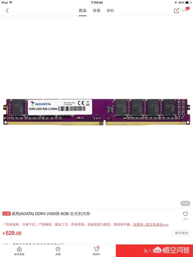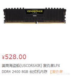 内存选择威刚DDR4 2400频的8G内存条,买两条,1058元。