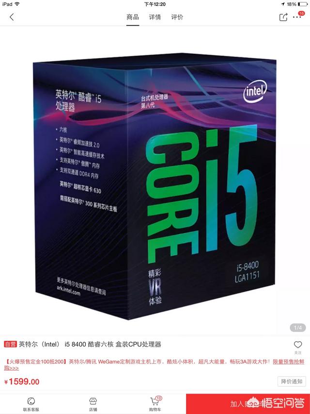 盒装,六核六线程,可以玩吃鸡等大型游戏。1599元