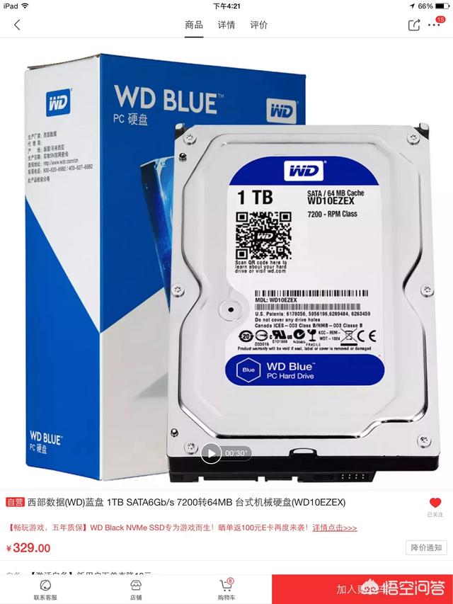 机械硬盘选择西数2T7200转硬盘,能装不少游戏。369元。