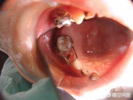 有时候,某一颗乳牙还未到换牙的时候却已经龋坏到了非拔不可的地步,这样的乳牙拔出后也不需要镶牙,但必须戴一个小装置以保证缺隙不被其它萌出的恒牙所占领。这个装置我们叫它缺隙保持器。
