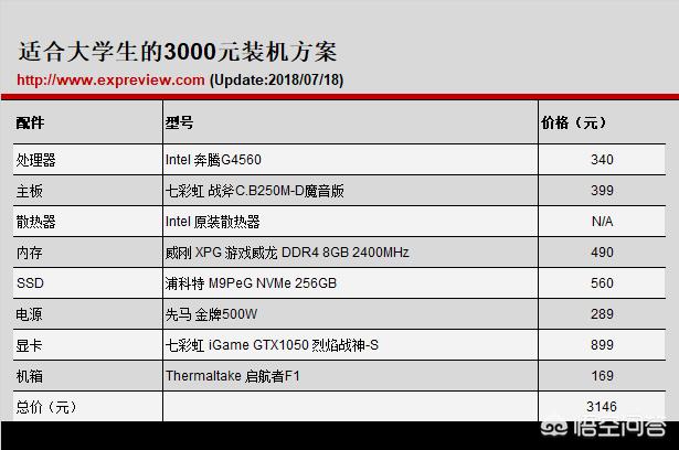 所以总得来说,3000元的装机方案,其实奔腾G4560、GeForce GTX 1050已经是最具有性能追求的方案,就现在的大学生娱乐来说,《守望先锋》、《绝地求生》、《堡垒之夜》都是基本足够玩的,更加重要的是,3000元的预算,相信大部分学生都是能够通过暑假来赚到的,那么快乐的大学生涯就已经近在眼前。