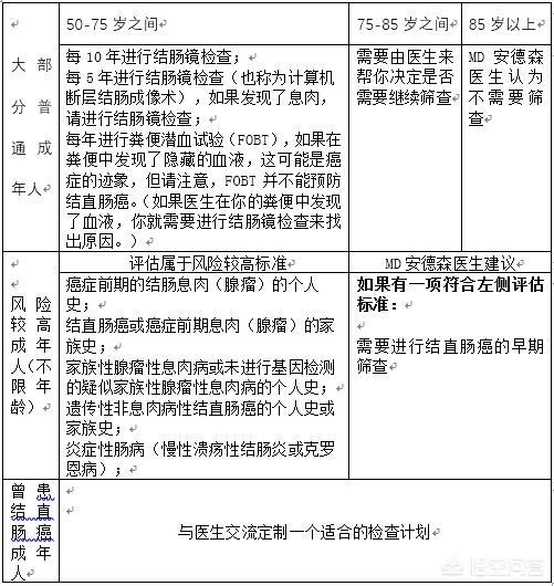 结直肠癌高危人群及早期检查建议: