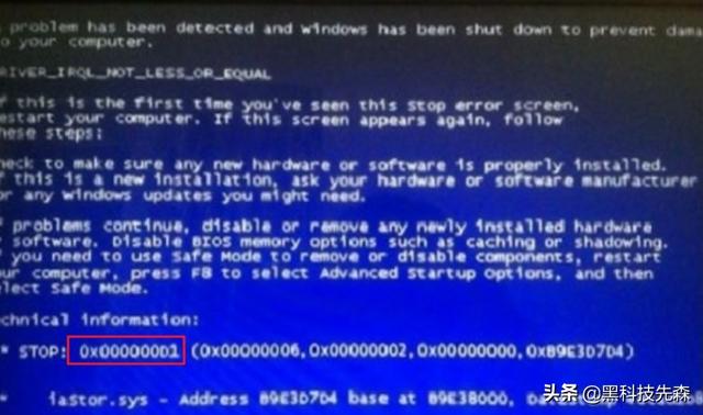 蓝屏代码1: