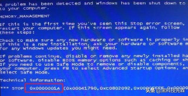 解决办法:开机按F8进入安全模式,将系统进行杀毒,也可以尝试重新插拔内存,一般这代码内存损坏概率不大。