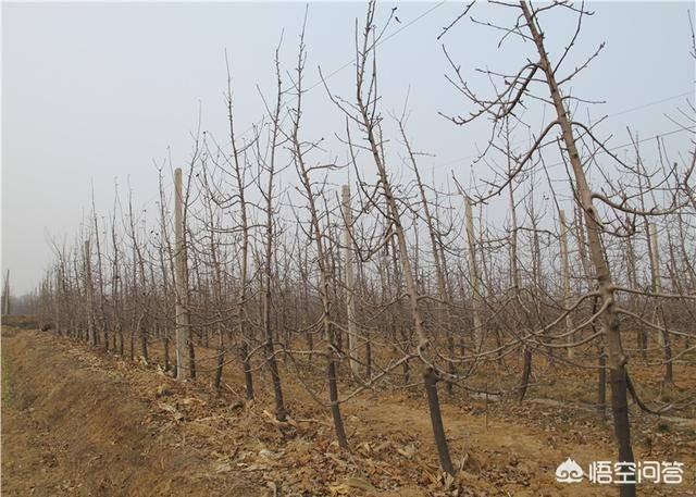 按高纺锤形树形要求,中心干与同部位主枝粗度比5~6:1。为达到这个比例,一般苹果树前两年冬季修剪时,都要将中心干上发出的主枝全部剪掉,并留马蹄形短桩( 留一二个隐芽,长1~2cm ) 。留短桩的目的是为了防止将中心干抹光后不再发枝,隐芽可发出较弱的枝条,与中心干拉开差距。