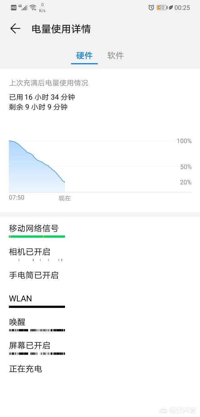 充电时,手机蓝牙连接手环,正常接打电话、使用微信等程序收发信息,没有其他耗电量大应用。