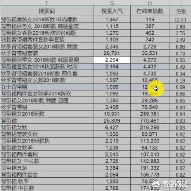 备注:我们要知道我们前期选的关键词一定要“买的人多,卖的人少”,如果我们以“支付买家数/在线商品数”这个是一个数学公式“分子是支付买家数分母是在线商品数”,那这样她们相除的值越大相对来说我们的词就越好。但是我们在淘宝现在的生态群都是“狼多肉少”狼就是我们的竞争对手,肉就是我们的意向客户,这个时候我们为了方便观看可以扩大10000倍