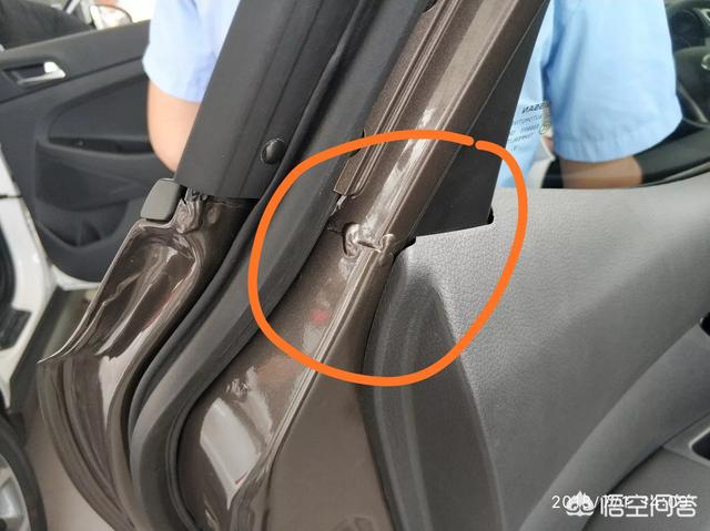 看汽车侧门的话可以看这个地方,假如说这个地方上面用手往下摸不是一体的,有焊缝,那证明这是上下拼接式车门,假如说是一体的,车门在这个地方是没有一点焊缝,是一个完整的,那它就是一体冲压式车门。没有焊缝的,没有痕迹的,安全肯定是要好一点的。