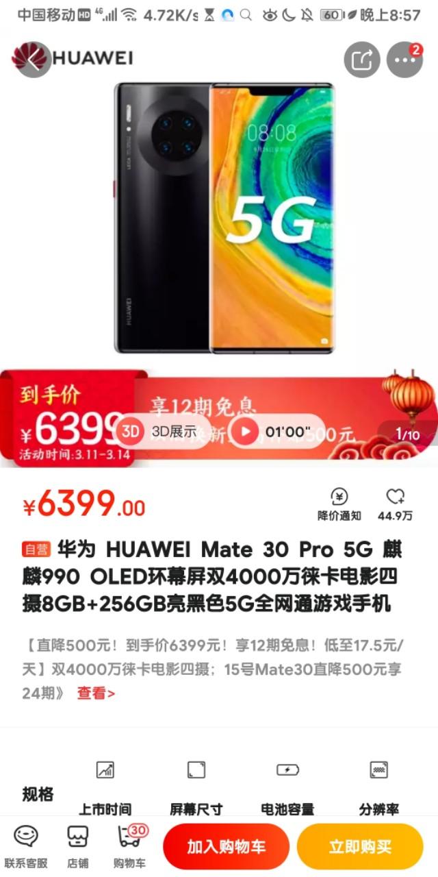 拿华为Mate 30 5G版本例子,该机目前为止国产手机中卖的最好的高端旗舰机之一,它的售价也不便宜,售价高达6899元,目前该机在全球的出货量超过800万台。