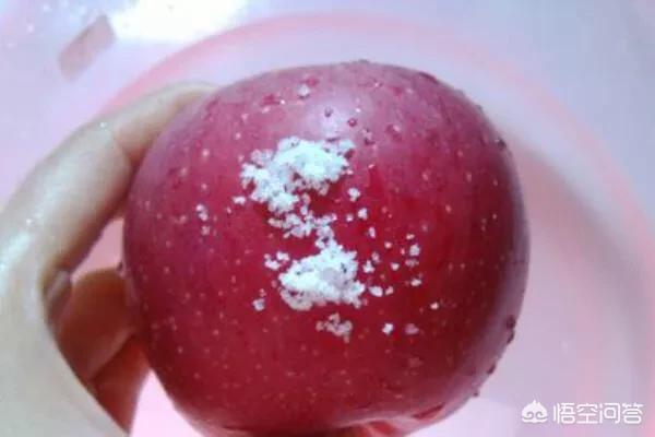 2 用食盐洗,苹果淋水弄湿后,在表皮放一点盐,然后双手握着苹果来回轻轻搓,在用水冲干净,这样不仅可以洗掉表皮蜡,又可以消毒。