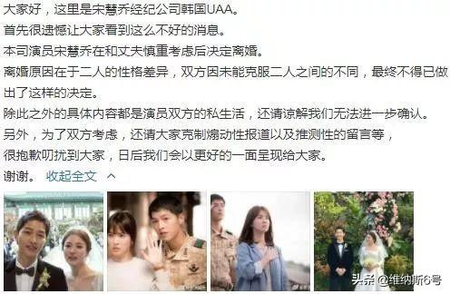 随后就是两人一边洒狗粮,一边被媒体猜测婚变,上个月还在宋仲基在接受媒体采访时说“婚后内心更安定了”,今日就发布离婚声明,真是男人的心变化太快。