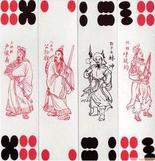 制成,现今印刷发展了,也用扑克用纸制造,个别用塑料制成,牌面中间,也多印上各种主题图案,如水浒、红楼梦