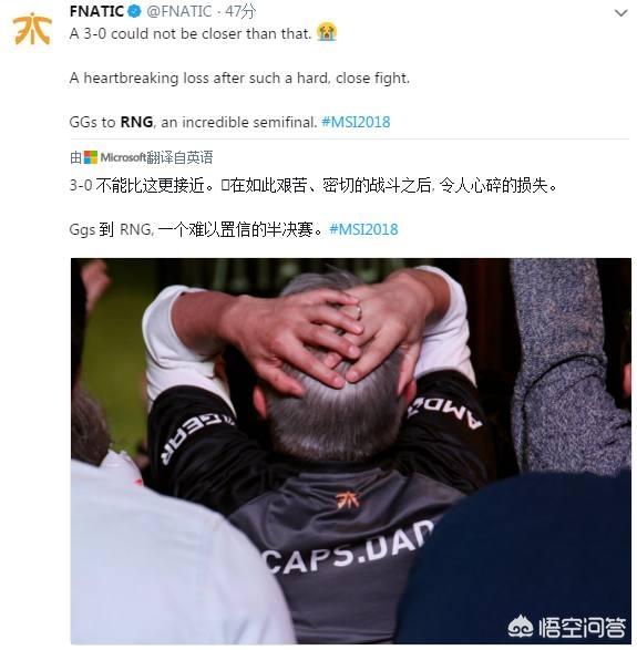 赛后,FNC官方发表动态:没有什么比经过一番苦战之后拿到三比零的战绩更让人心碎了,RNG打得不错,一个难以置信的半决赛。