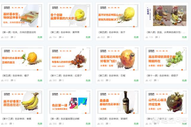 如上面说到的一样,色彩系列学习往往是已单体为主,其中衬布也可包含在内,图示的是艾艺色彩课程,色彩相比素描有相同也有不同,需要童鞋们在绘画实践中去体验并把握知识点,才能真正的学会色彩,如果不画你永远也不会感受到色彩的魅力
