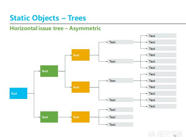 树形图有点类似思维导图,将问题分为一级问题~二级问题~最末级问题,也可以将方案分为主要结论~论点~论据等形式,是结构化思维的主要表现形式。