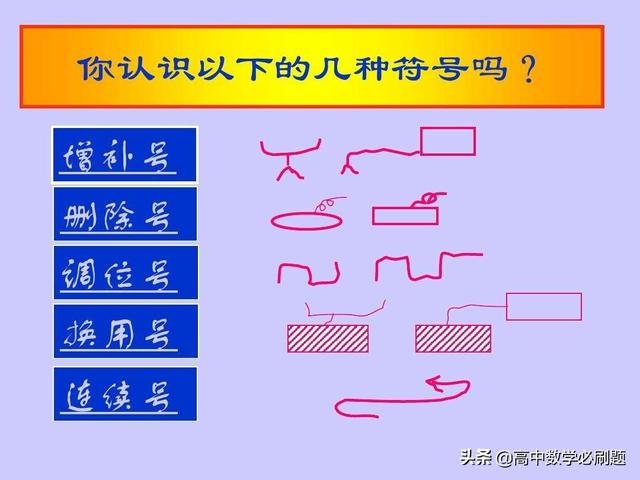 作文中出现本来修改无可厚非,但作文试卷中不能出现涂改液、修改纸等标记,要在日常练习中加强训练,准确使用约定俗成的修改符号。如写错了用改正号,写多了用删除号,写少了用增补号,写反了用对调号。