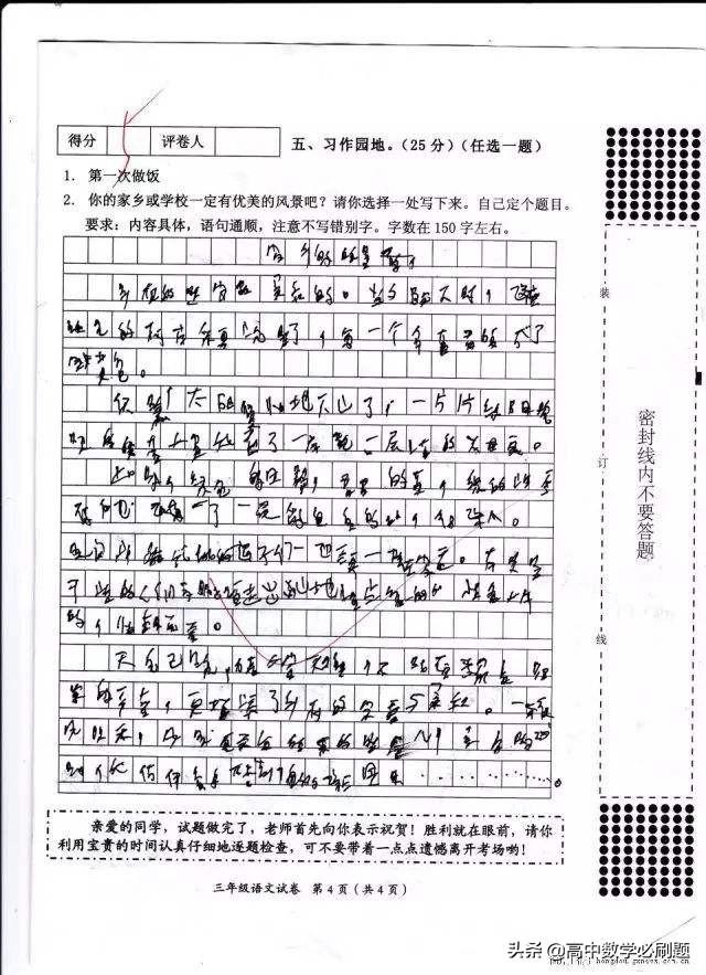 4.字迹潦草。有些学生的钢笔字太潦草,像甲骨文,让阅卷老师猜就猜不到,无法辨认。这样的文章,就不止扣分,阅卷老师心情不好,会减等给分。