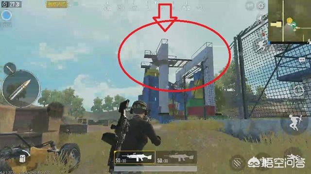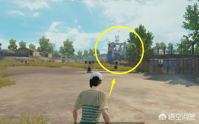 登录游戏,进入靶场,找到下图红圈中的这栋最高建筑,老母鸡就在它的顶端平台那儿,但是想要攀爬上去,可不太轻松啊。
