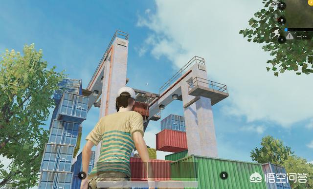 其次,中间千万不要拐弯,一直跑到对面有小箱子的集装箱那里(如上图所示),然后再往上顺着路走就行。