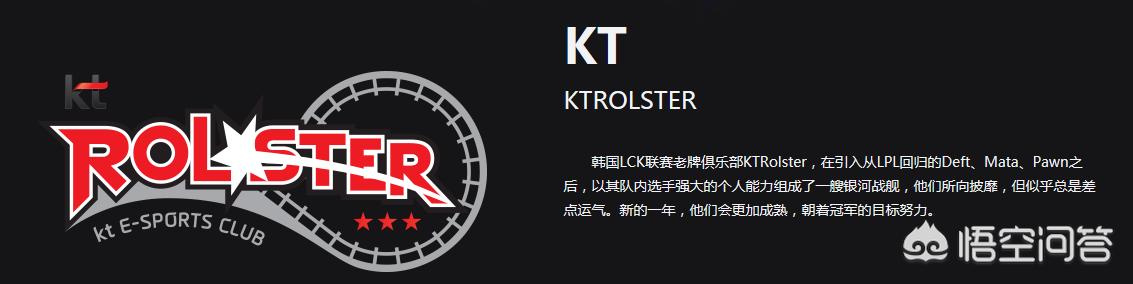 LCK老牌强队,综合了S4赛季和KT以前的豪门,Mata,Pawn,Socre还有Smeb和Deft,这些都是KT人中豪杰,光是硬条件就可以略胜SKT一筹。喷子轻喷,个人观点,这个赛季SKT战队除了Faker和小黑以及Bang,个人觉得没有什么高手了。