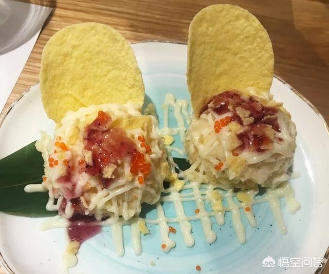 把土豆放入食品袋中用擀面杖碾成泥状后,加入小块黄油、盐、少量牛奶,然后揉捏均匀后取出,用挖球器把土豆泥做成圆形,然后在表面涂上沙拉酱、多春鱼子、蓝莓酱、薯片,这样一个摆盘好看又好吃的土豆泥球就做好啦,下图是实物哦.