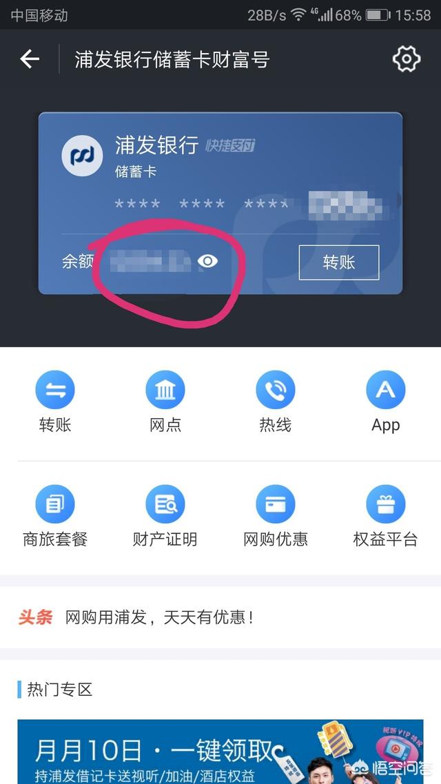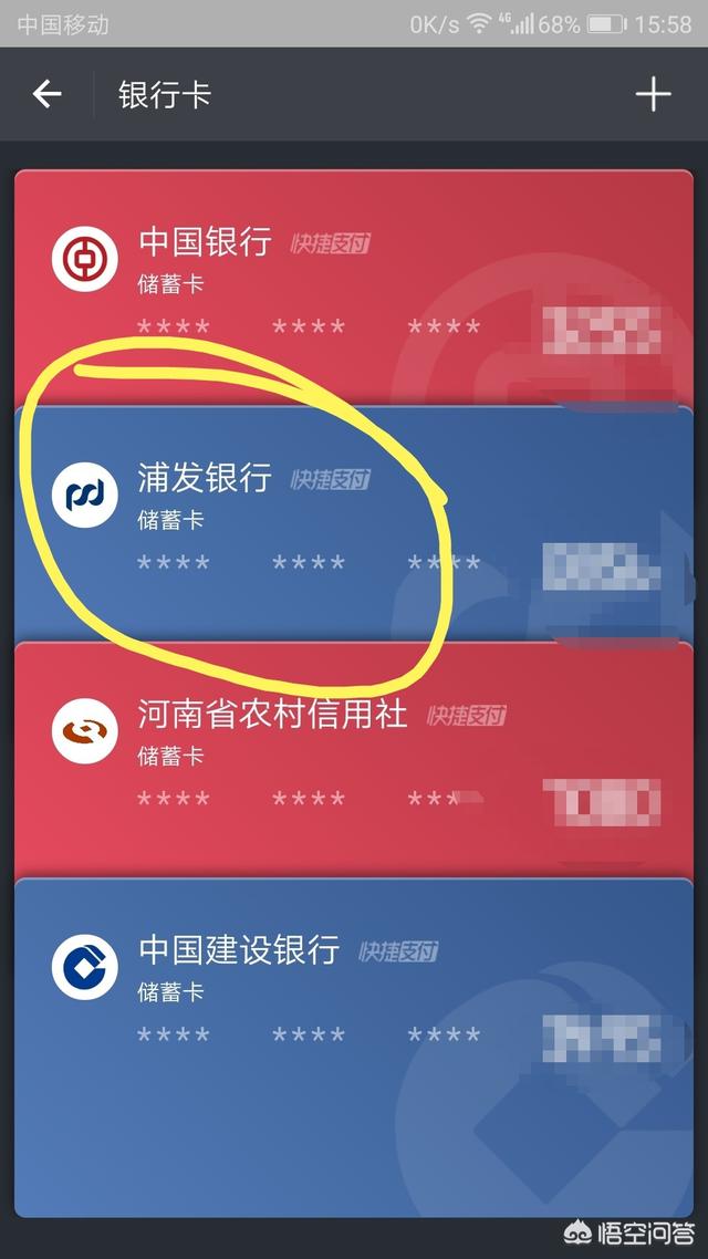 那么下面就以笔者所绑定银行卡进行操作,我以"浦发银行卡"进行讲解,步骤如下:首先点击"浦发银行卡",进入界面如下图所示:
