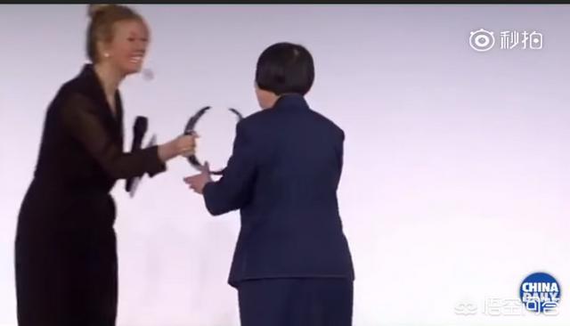 然后走下台,结果奖杯忘记拿了,哈哈哈哈,女主持叫住她又把奖杯递给她。