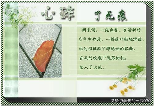 - “心碎了无痕”——看到这个题目我就想起这首歌了。曾经有那么几天单曲循环过……