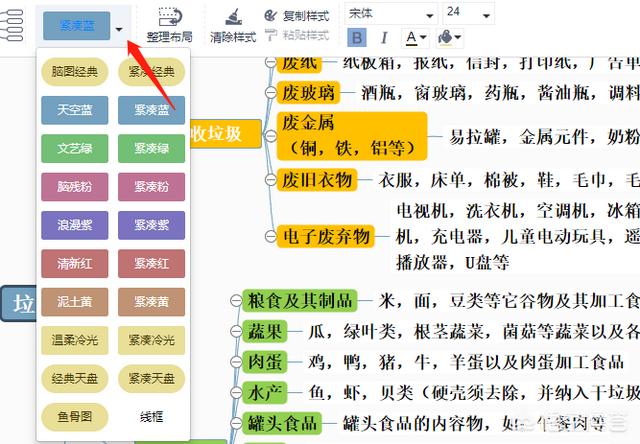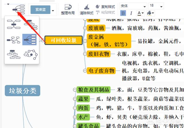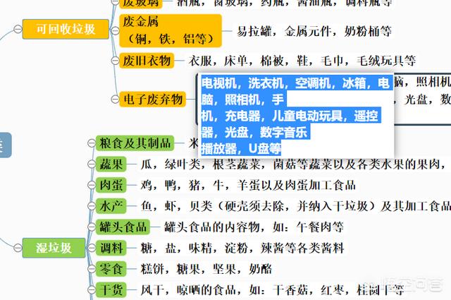 双击思维导图节点可以对其内容进行填充使用,填充的内容是围绕垃圾分类所延伸的内容,较为方便。