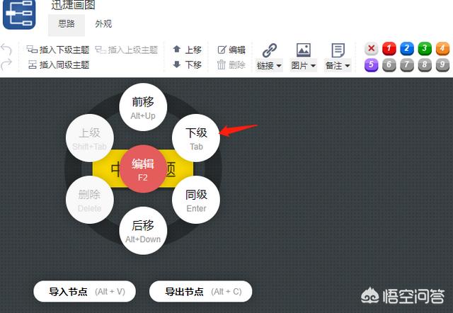 进入在线编辑面板之后,围绕面板中的中心主题对框架进行搭建使用,根据中心主题所能拓展出来的长尾关键词进行搭建。