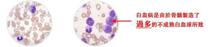 而白血病是“无外来感染”式的白细胞升高,很高,白细胞大量出现,还会有些“残次品”白细胞,形态不正常,幼稚白细胞……