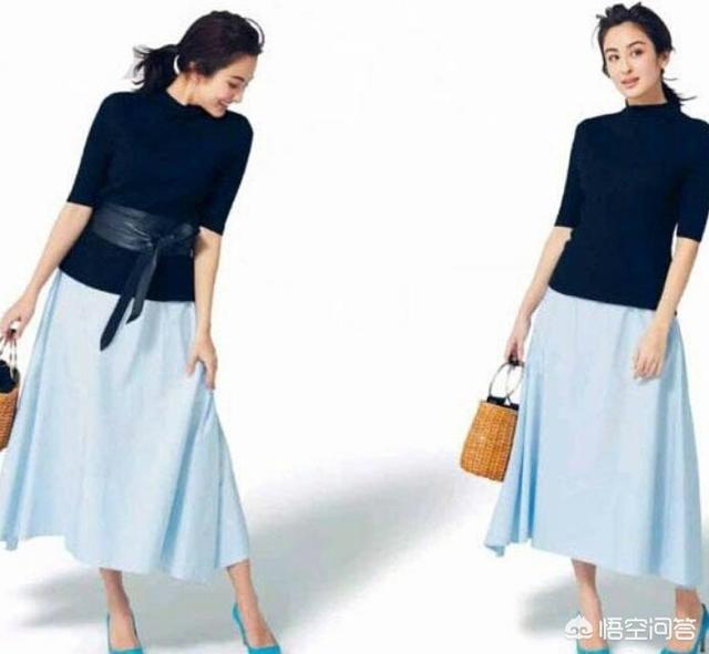 简单来说,就是选择跟自己肤色相反色调的衣服。举个例子,如果我们是暖色调肤色的人,买衣服的时候先排除暖色系的颜色。然后,在冷色系的衣服中,选择合自己眼缘的款式,例如宝蓝色的拼接长裙。