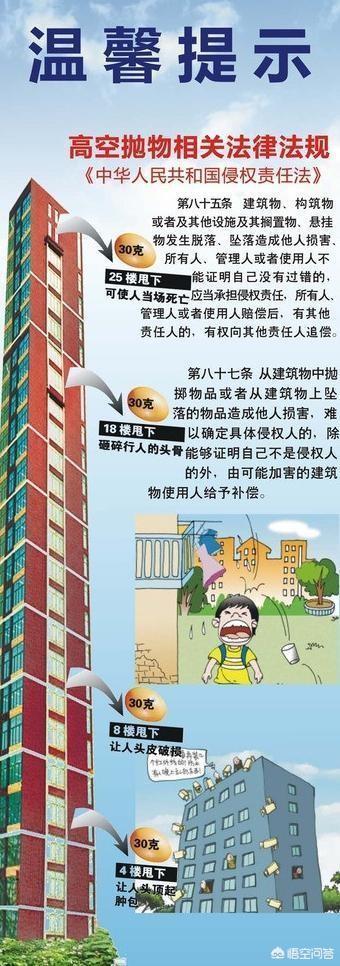 随着中国社会经济的飞速发展,各地高楼大厦林立,高空抛物的问题越来越多,有时候你的无心一抛,带给别人的可能就是致命一击,到时候就要承担的就是刑事责任,希望大家能够约束自己的行为,各部门和小区也要制定相关的制度和准则,小区内最好能够安装监控约束相关行为。