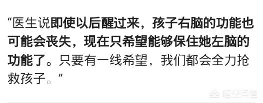 作为一名新晋宝妈,实在不愿意看到类似的案件,孩子太可怜了,现在只能祈祷上苍怜爱,让孩子早些苏醒与复康,可是孩子拼尽全力生存下来,她的未来,又有谁能承担?这个事给她的家庭所造成的伤痛,又有谁能治愈? 真正只留习疼与惋惜了.