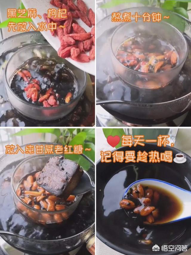 食材:黑芝麻、枸杞、红糖
