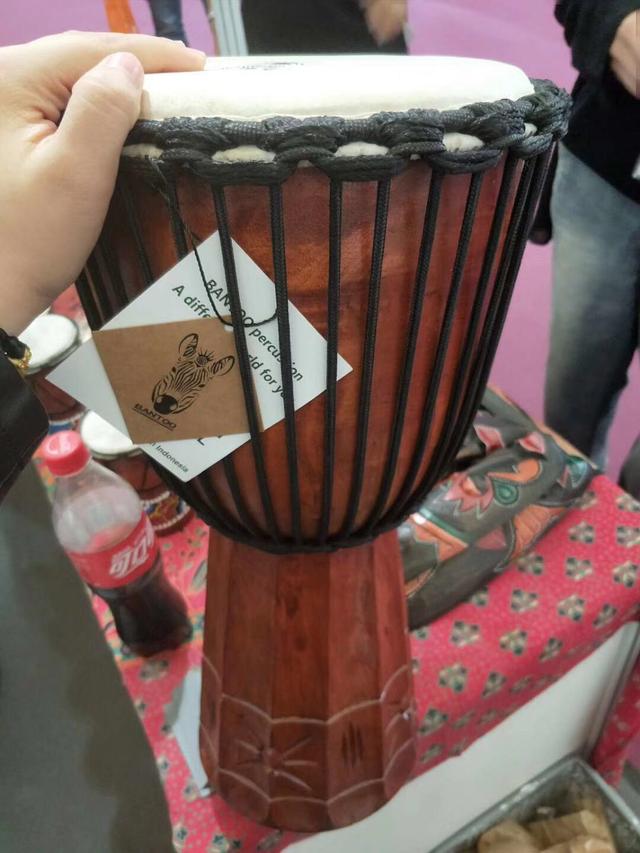 这次上海乐器展,很多同事买了同样的一个非洲鼓(下图),在公司玩得不亦乐乎,还组织了上次学习拍箱的孩子们一起学起了这个鼓。