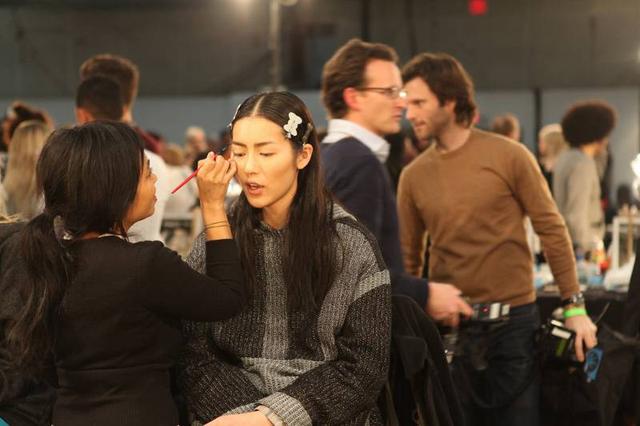 时装周的后台,5分钟完成一个全妆,每次下台,冲忙换装,甚至,用瓶装水洗头准备下一个造型,然后坐上车,被送到下一场秀。