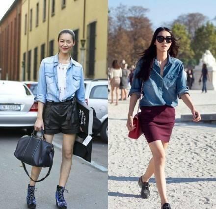 偶尔露腿的时候,也从不过分妖娆,简约的牛仔衬衫配单色短下装,一切把握的刚刚好